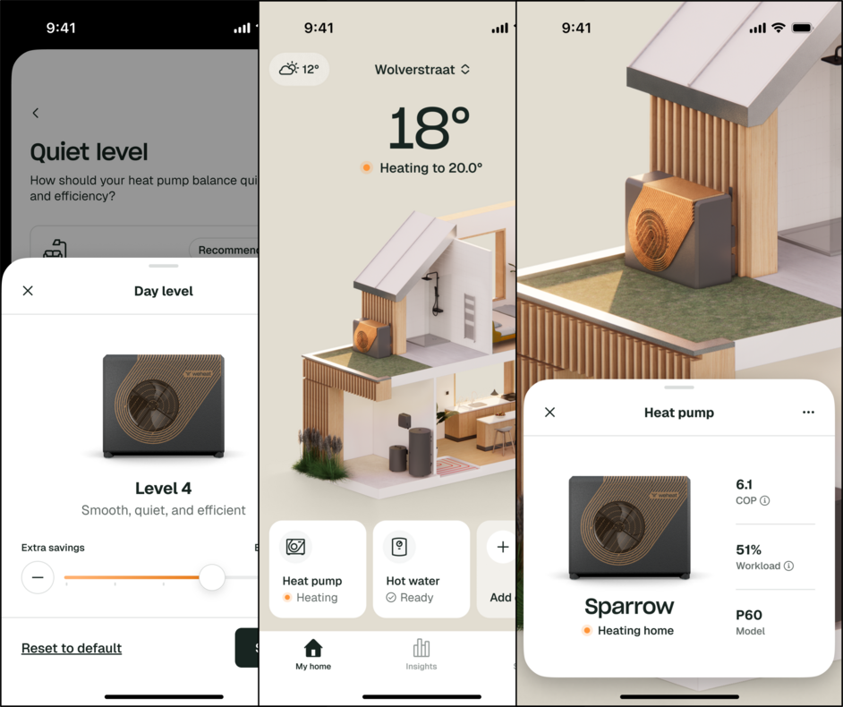 Inzicht in werking en energiegebruik/besparing, stille modi voor dag/nacht, en slimme sturing die vooruitkijkt (zon, energieprijs, dagritme).